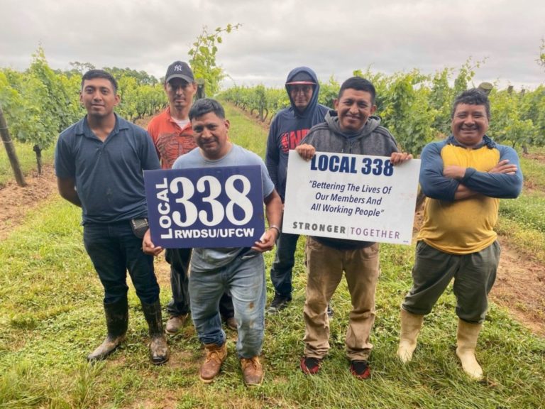 On Sept. 27, Pindar Vineyards employees made history as the first-ever New York agricultural workers to unionize, joining RWDSU/UFCW Local 338 after receiving certification from the New York State Public Employment Relations Board (PERB). This historic union certification in Peconic comes after the 2019 passage of the Farm Laborers Fair Labor Practices Act, which grants agricultural and farmworkers workplace protections, including the right to join a union. RWDSU/UFCW Local 338 first filed to represent the vineyard’s 12 agricultural workers on May 28, 2021.