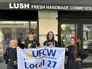 We’re already winning strong first contracts at our stores, and Lush has been a partner with our union in our effort to build a better future at the company. And, through our organizing, we’ve even raised the bar for all Lush employees. The company introduced nationwide increases this year, which were undoubtedly the result of us unionizing at our stores.