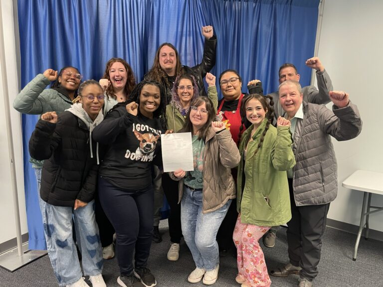The campaign to organize these workers included in-person meetings about the benefits of joining a union. In spite of the company’s anti-union tactics, including captive audience meetings, anti-union literature posted around workplace, and the termination of key organizer the day before the election, these workers stood together for a better life.