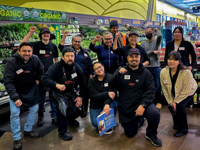 “Their fight took to the streets where they organized numerous rallies and marches that showed their power. It took to their stores where they stood up and demonstrated their unity by signing petitions and wearing buttons. Grocery workers also joined with customers in the fight for better staffing, talking to over 3,000 customers about their shopping experiences and sharing their feedback with these companies that can afford to do better. These actions built the strength needed to reach this agreement. Only by rising up together were grocery workers able to make a change in their workplaces that will benefit all grocery workers and customers in the future.”