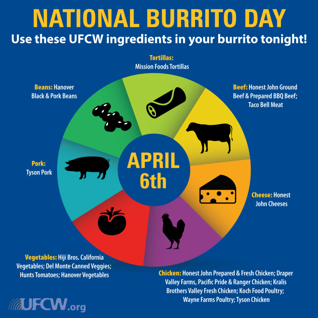 Did you know UFCW members make many of the ingredients that go into a tasty burrito? Mission Foods Tortillas, Hanover black beans and vegetables, and many of our favorite chicken, beef, and pork brands are all made by UFCW members around the country. Thanks, guys!
