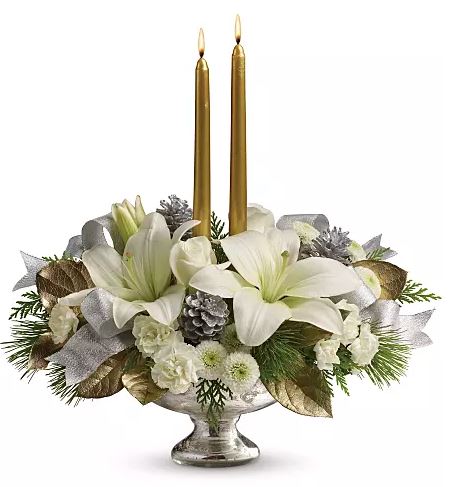 Can’t make it to dinner? Show you appreciate the invitation with this silver and gold centerpiece.