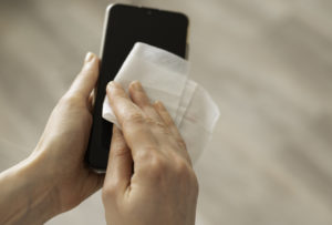 Wipe down your cell phone and anything else you take to work and touch frequently before you enter your home.