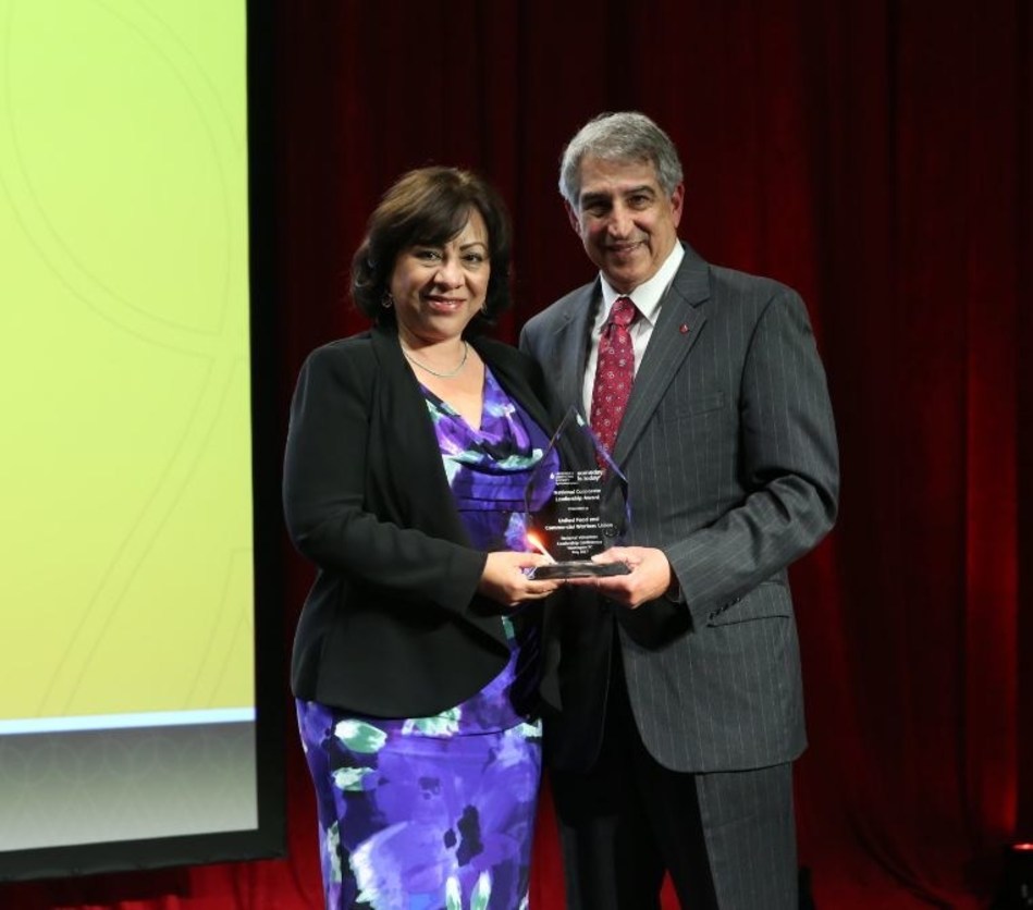WASHINGTON, D.C. — The world’s largest voluntary health agency dedicated to finding cures for blood cancers, The Leukemia & Lymphoma Society (LLS), recently awarded its longstanding partner, The United Food and Commercial Workers (UFCW) with the National Corporate Leadership Award at LLS’s Volunteer Leadership Conference awards dinner held in Washington, D.C., on May 2, 2017.